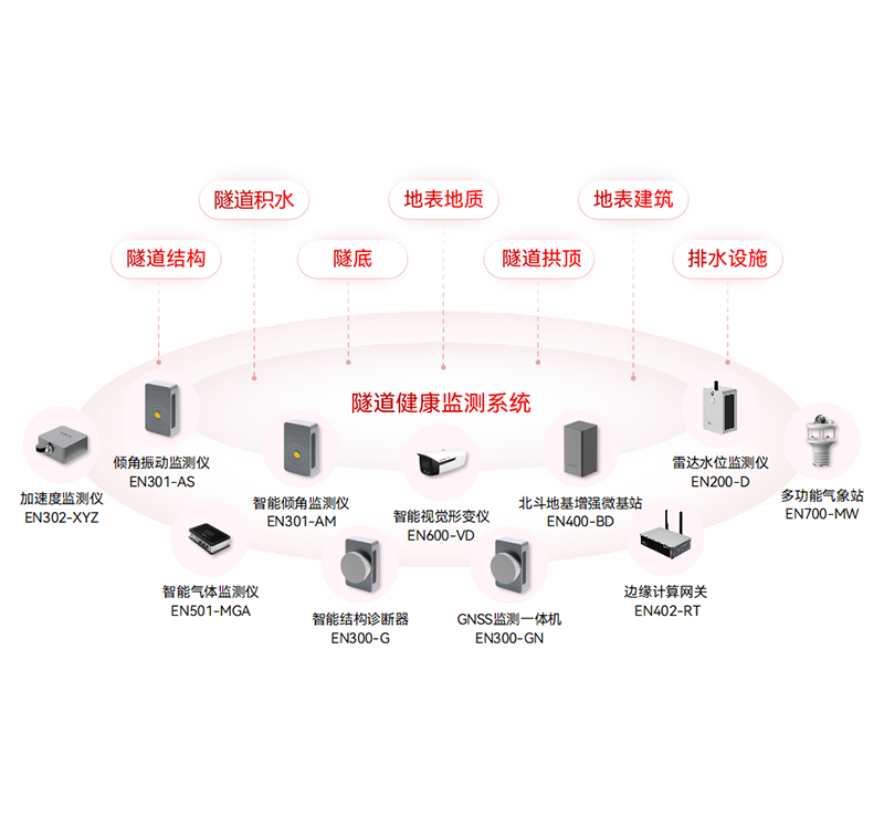 通過對隧道涵洞兩端拱頂和上端地表位移、沉降,隧道內部的傾斜、微震、溫濕度、人體舒適度、水平收斂和裂縫,地表建筑物傾斜監測,隧道路面水位監測等監測指標數據建立對隧道工程的監測、評估與預測系統以趨利避害,實現隧道服務水準的實時安全預報警,為隧道結構變形分析和結構缺陷損失分析提供數據支撐。